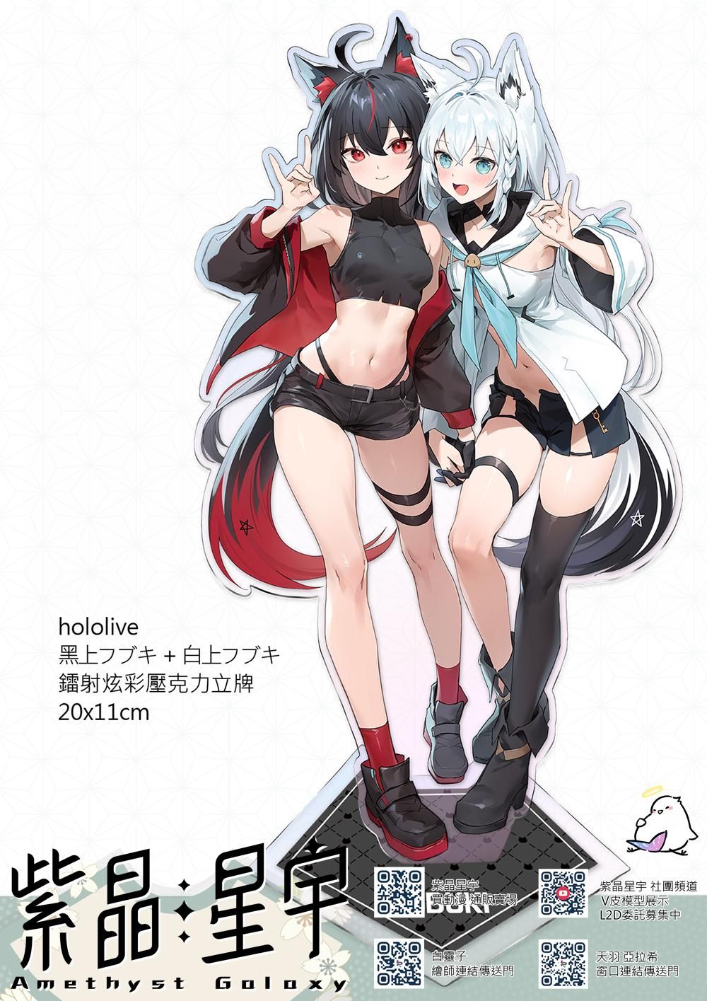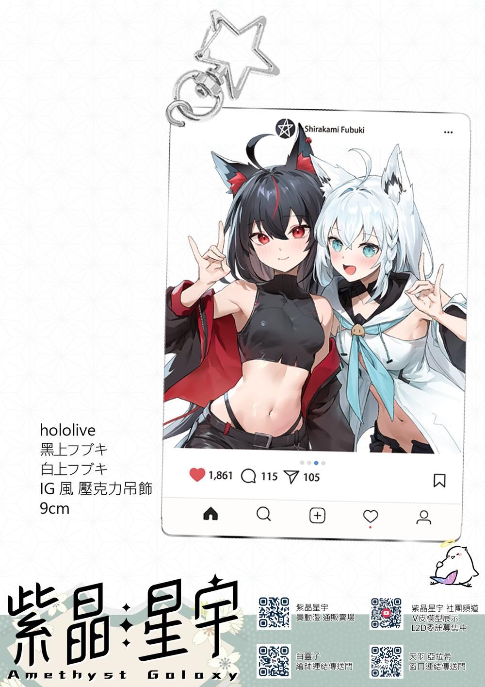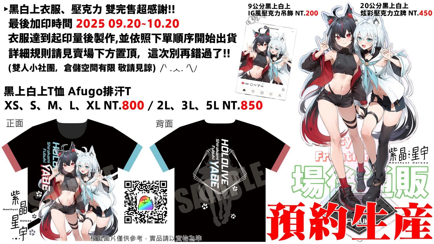 買動漫 | 【預約生產 (衣服預計三個月至半年出貨,詳細請看下面說明)】《Hololive》黑上白上T恤 Afugo排汗T、黑上白上鐳射炫彩壓克力立牌、IG風壓克力吊飾