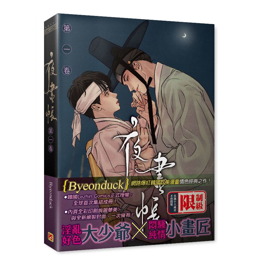 收錄1《夜畫帳 第一卷》規格 A5╱排版 左翻書╱後加工 美術紙封面+燙色裡封+全彩漫畫