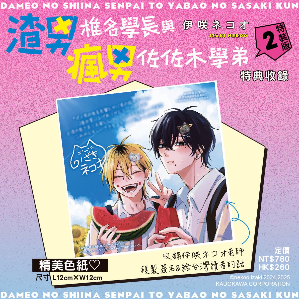 ●精美色紙♡尺寸:L12cm×W12cm(收錄伊咲ネコオ老師複製簽名&給台灣讀者的話)