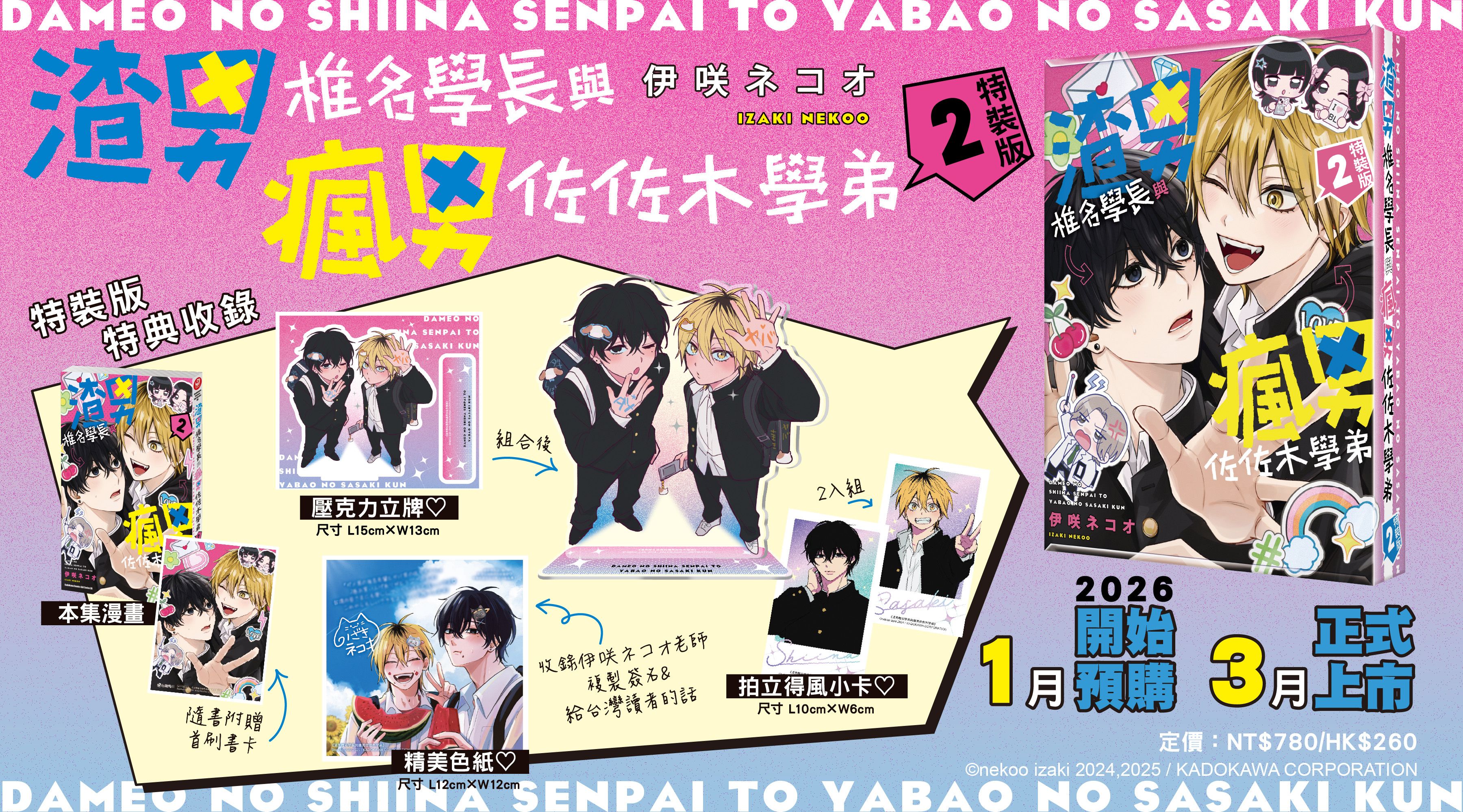 26年3月 免運預購 角川 BL漫畫 渣男椎名學長與瘋男佐佐木學弟 (2) 特裝版 紙箱出貨